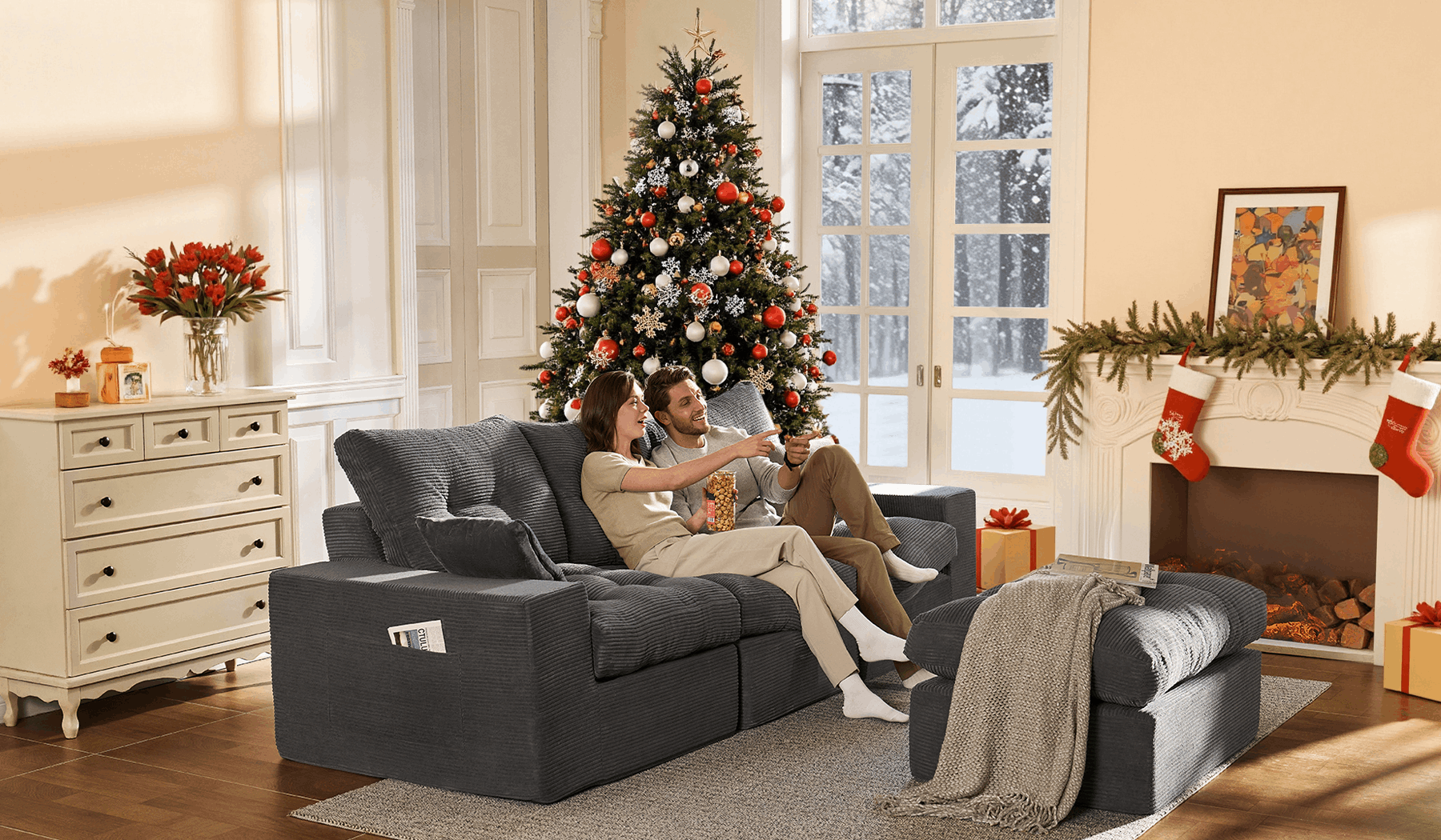 4-Seater Ergonomic High-Back Modular Sectional Couch-Supportive Seating, Corduroy Dark Grey 4-Seater Ergonomic High-Back Modular Sectional Couch-Supportive Seating, Corduroy Dark Grey