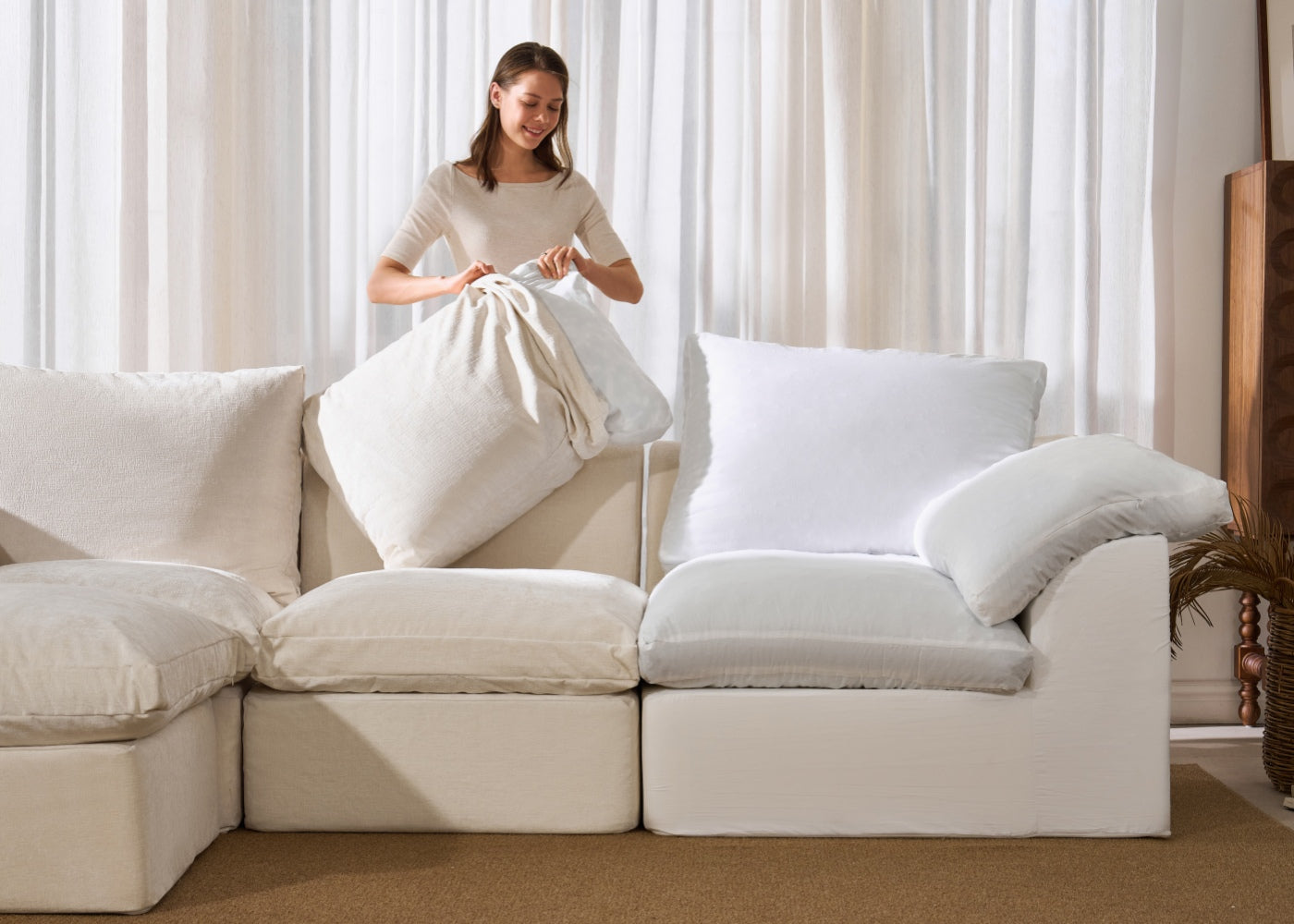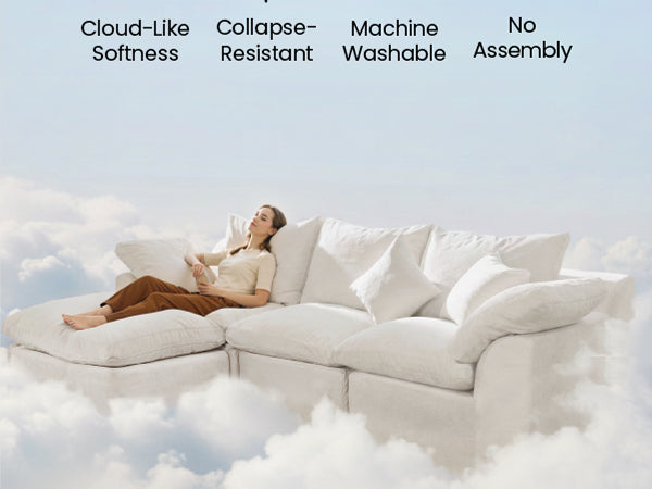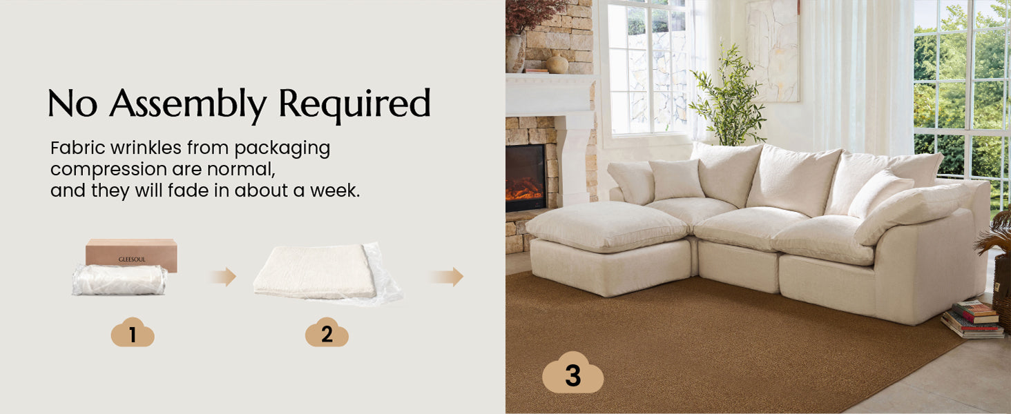 Be ready in 1 step! Setting up this cloud couch is incredibly easy. Simply unbox the cushions, place them together, and let them naturally expand over 72 hours.