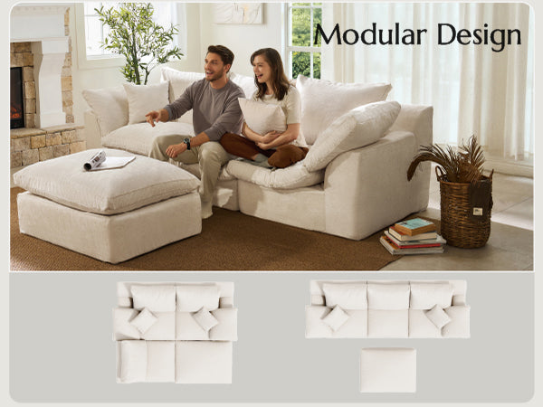 3-Seater Luxury High-Back Sectional Cloud Couch-Supportive Seating,Chenille Warm White