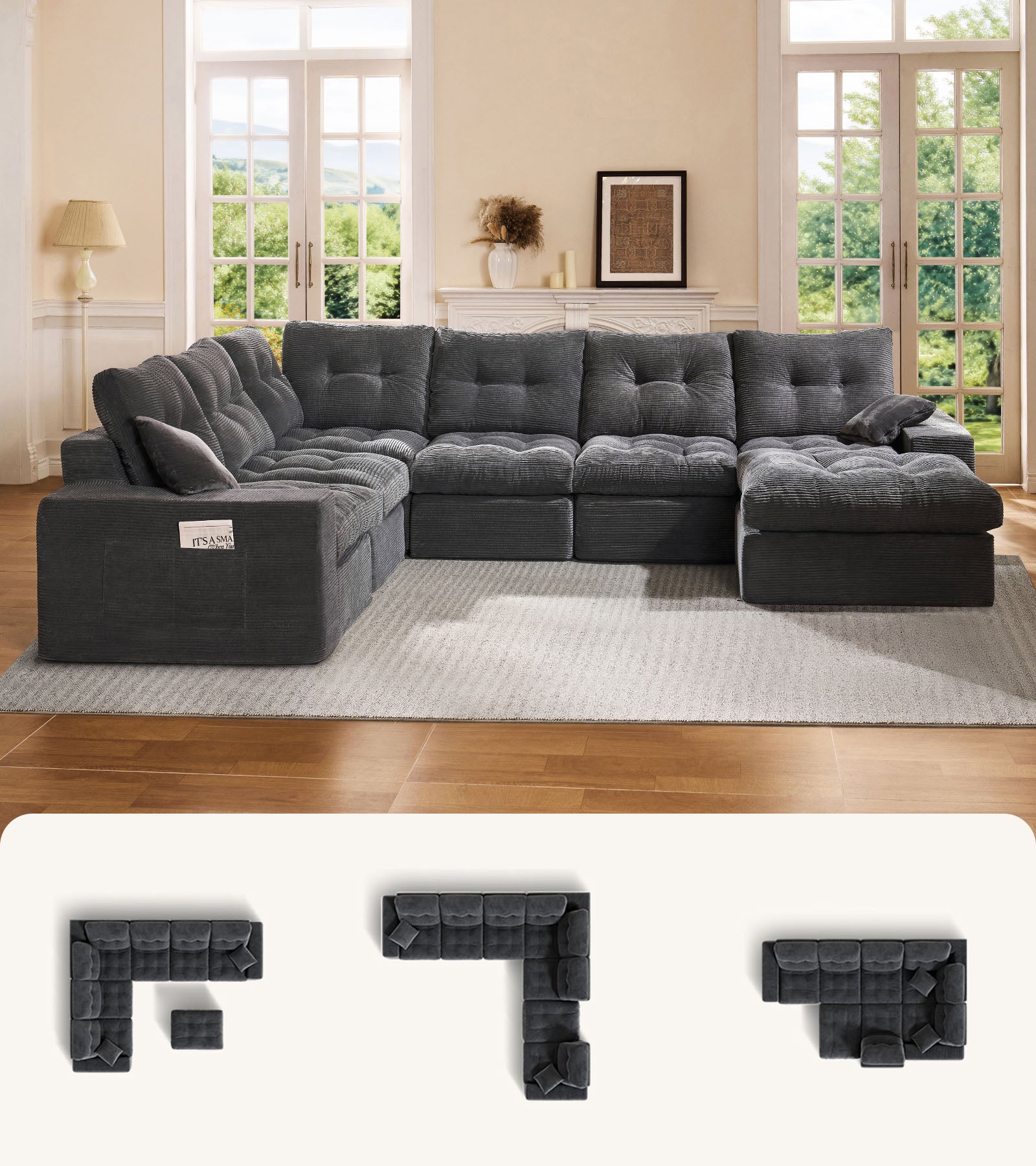 - Plush Corduroy & Button-tufted