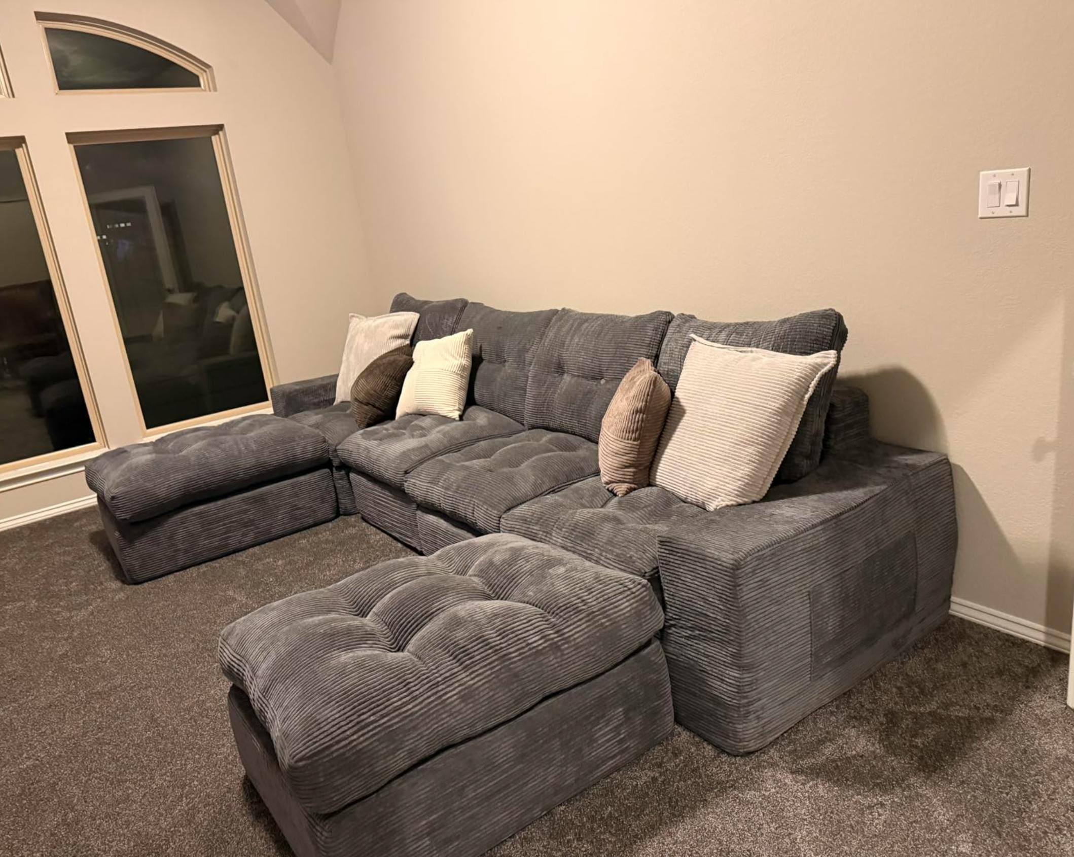 The modular sectional sofa is delivered in separate boxes, allowing for easy transport through tight hallways or narrow doorways. Please note, the boxes may arrive on different days.